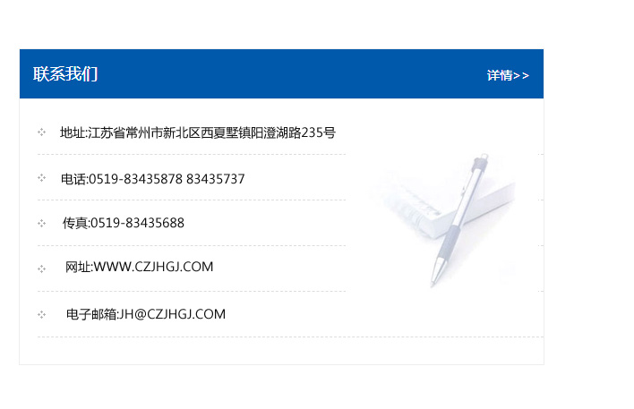 地址:常州市新北區友邦商務大廈1幢16、17層  電話:0519-85101652  傳真:0519-85112595  郵編:213022  網址:www_cz-jiayue_cn.taiyangtianyou.com  郵箱:xiajifengaa@163.com